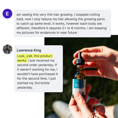We combined 9 of the best natural oils into one potent formula to stop hair loss and stimulate new growth simultaneously - without side effects.